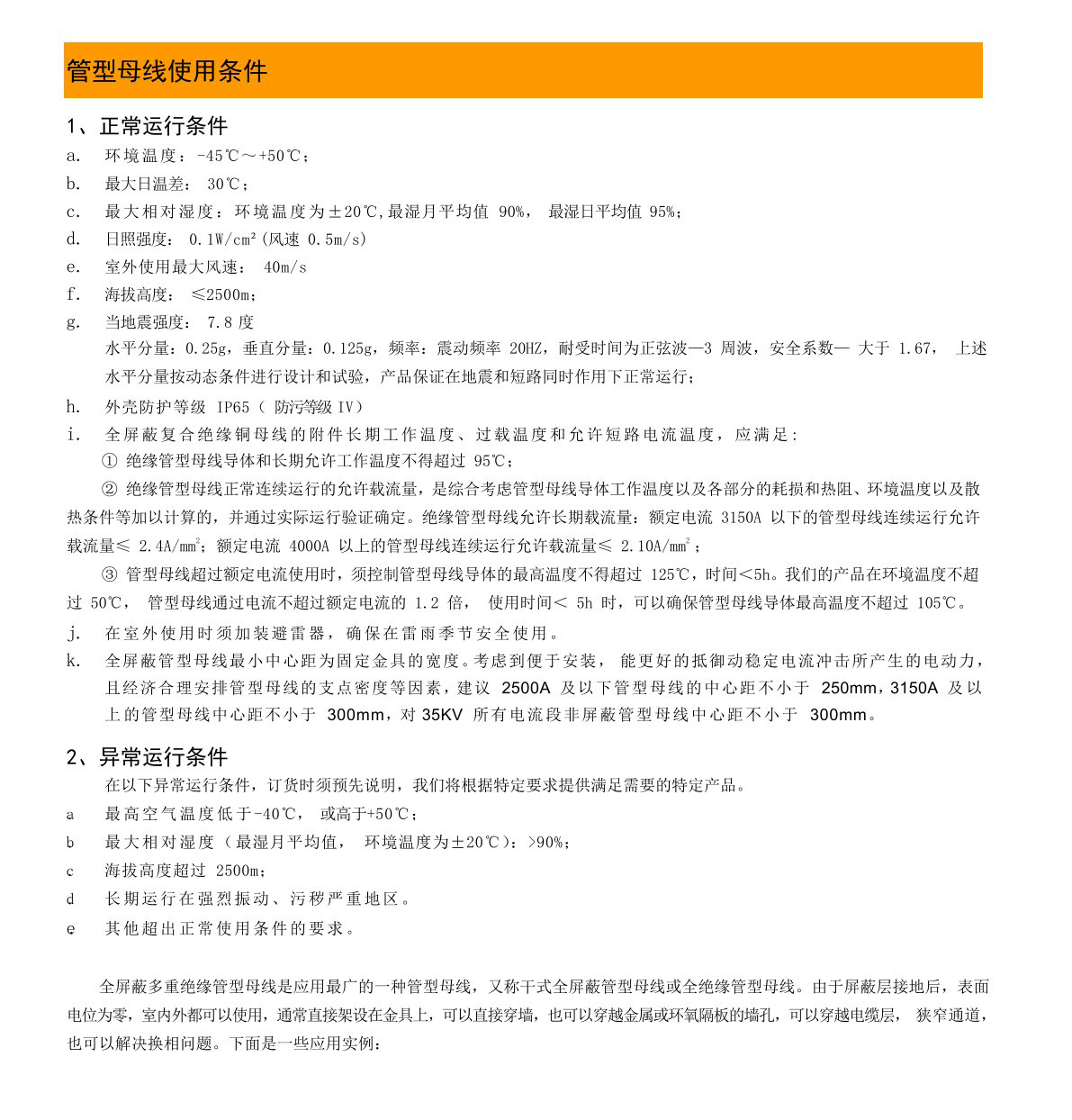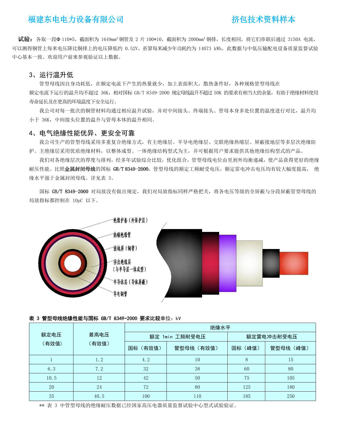 全絕緣銅管母線主要技術(shù)指標(biāo) technological index