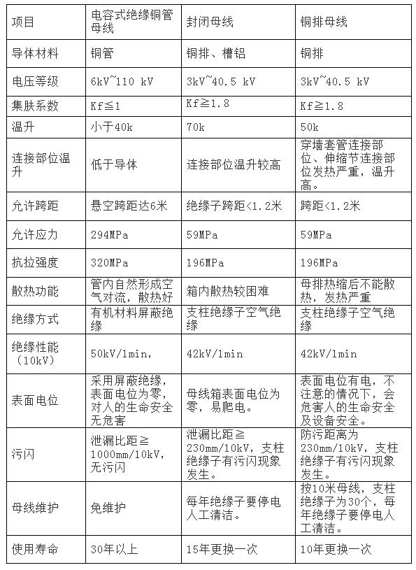 全絕緣銅管母線與常規(guī)母線比較technique comprare